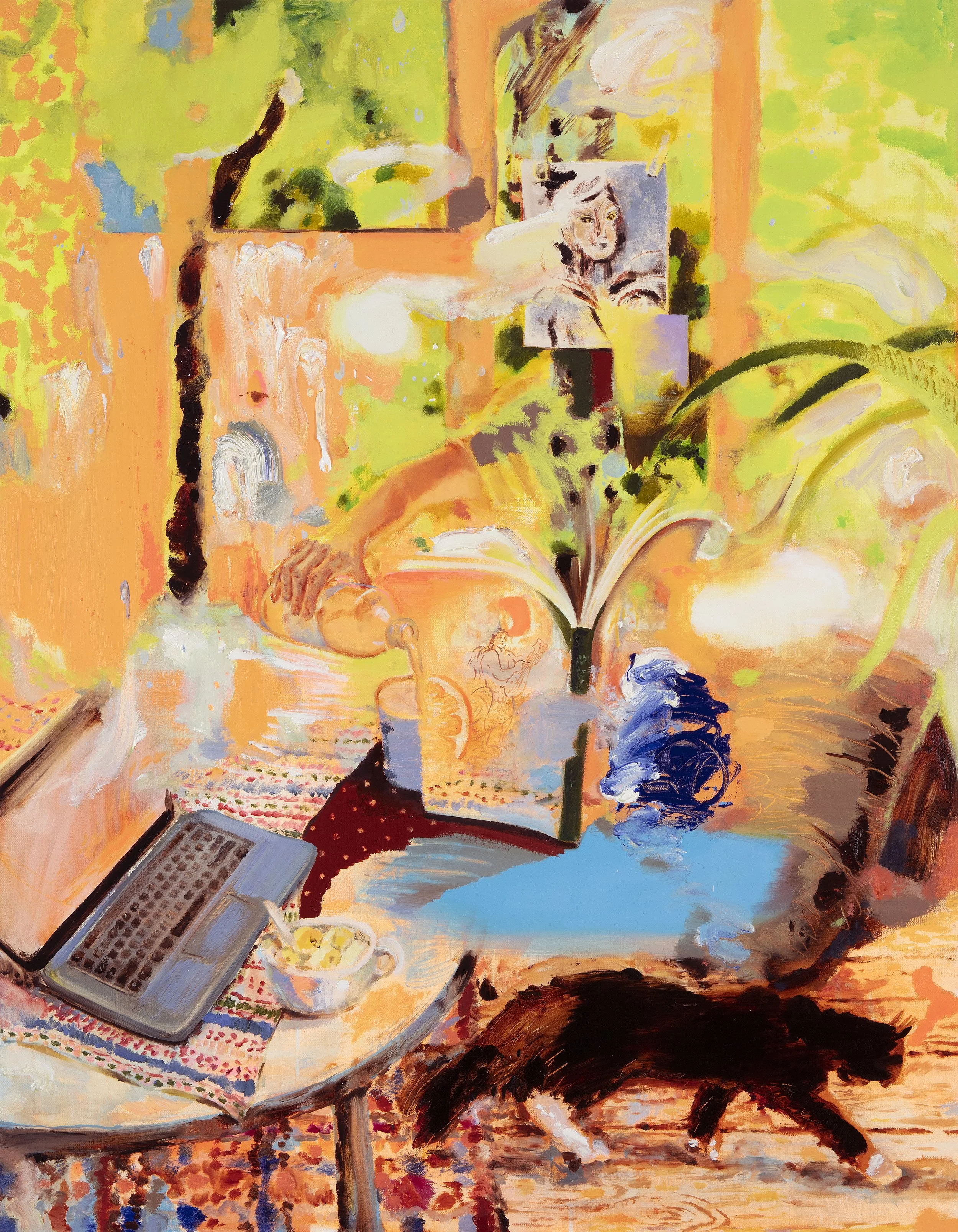 노을이 번지는 식탁과 검은 개 Sunsetting Table and Black Dog 2023 oil on canvas 116.8x91cm